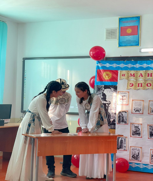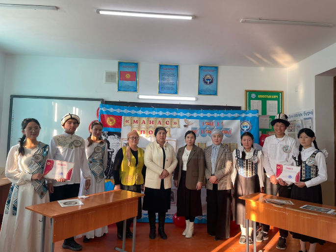 8-9- класстар арасында “Манас таануу” таймашы Нурдинова Кайрылсын тарабынан өткөрүлдү.3-4 класстар “Манас”эпосунан узүндү айтып беришти.Жаш өзгөчөлугүнө ылайык класстык тарбия сааттар өтүлду.